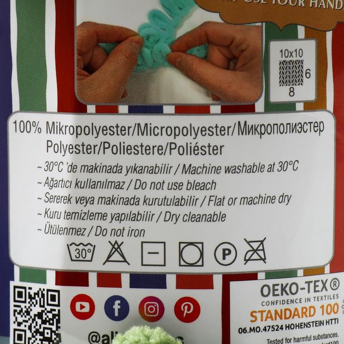 Плюшевая пряжа для вязания руками ALIZE, Puffy fine, 100% микрополиэстер, 14.5 м/100 г, (485) — Характеристики