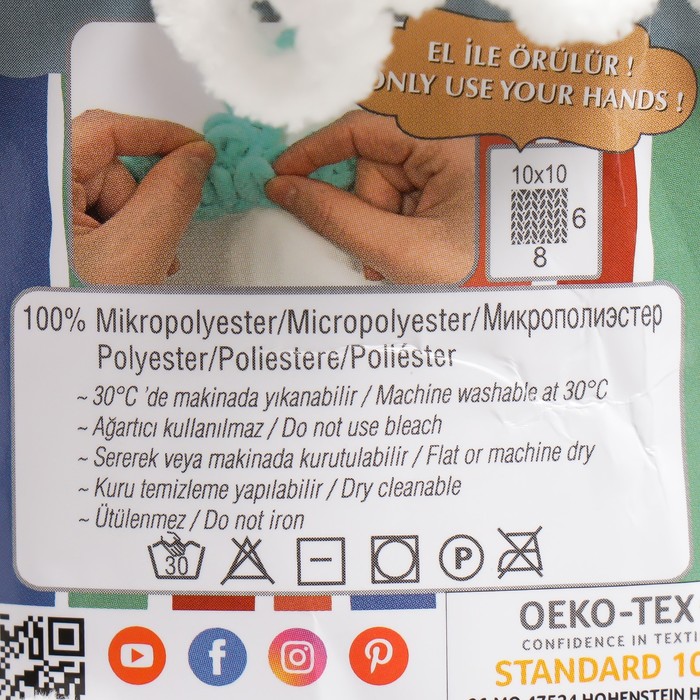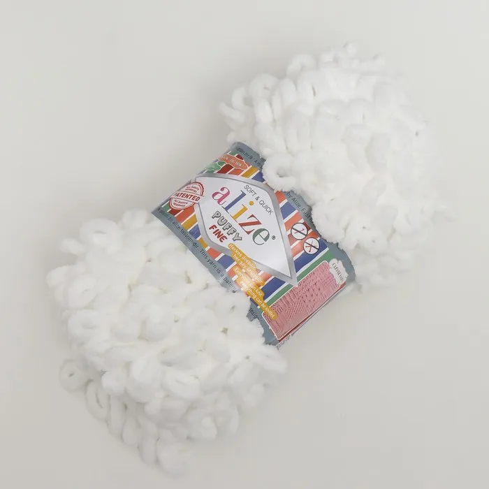 Плюшевая пряжа для вязания руками ALIZE, Puffy fine, 100% микрополиэстер, 14.5 м/100 г, (55 белый) — Характеристики