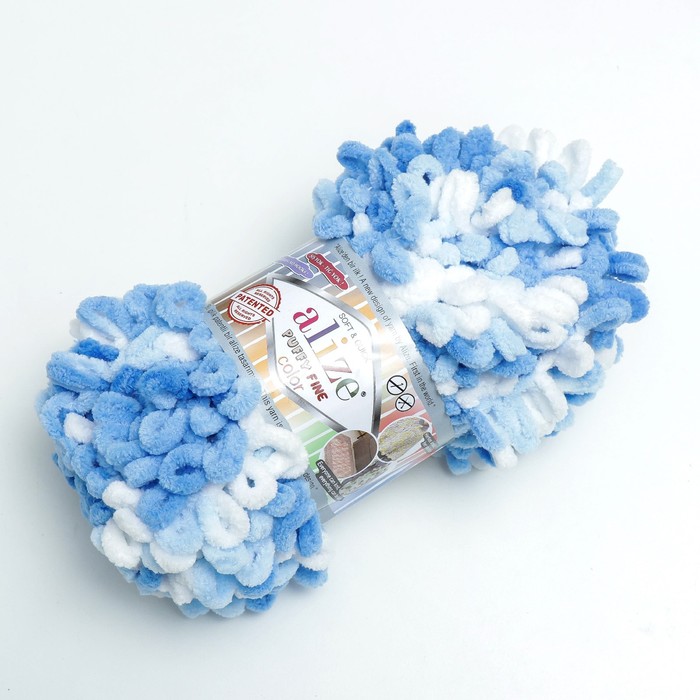 Плюшевая пряжа для вязания руками ALIZE, Puffy Fine Color, 100% микрополиэстер, 14.5 м/100 г, (6371) — Характеристики