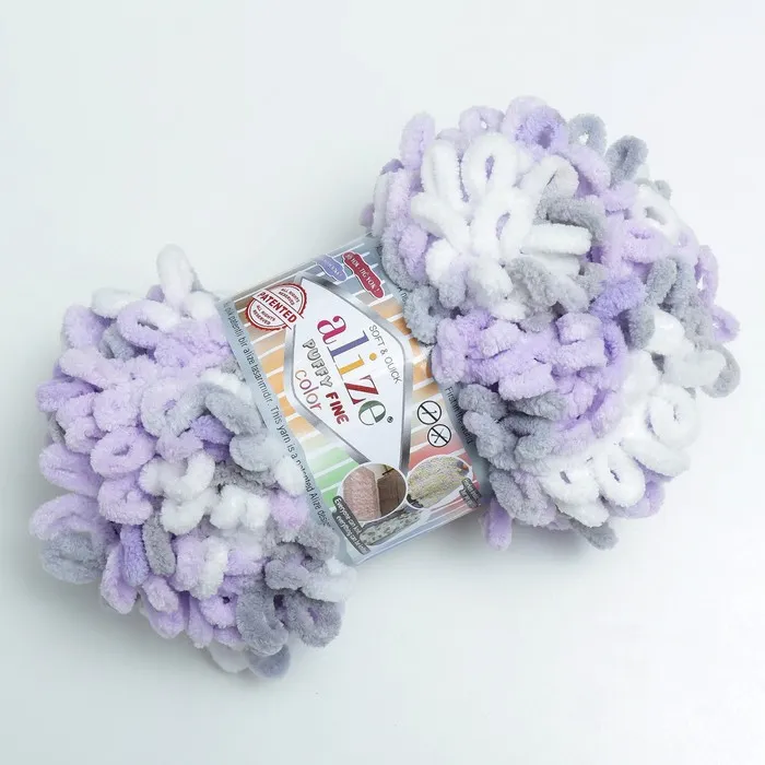 Плюшевая пряжа для вязания руками ALIZE, Puffy Fine Color, 100% микрополиэстер, 14.5 м/100 г, (6372) — Характеристики