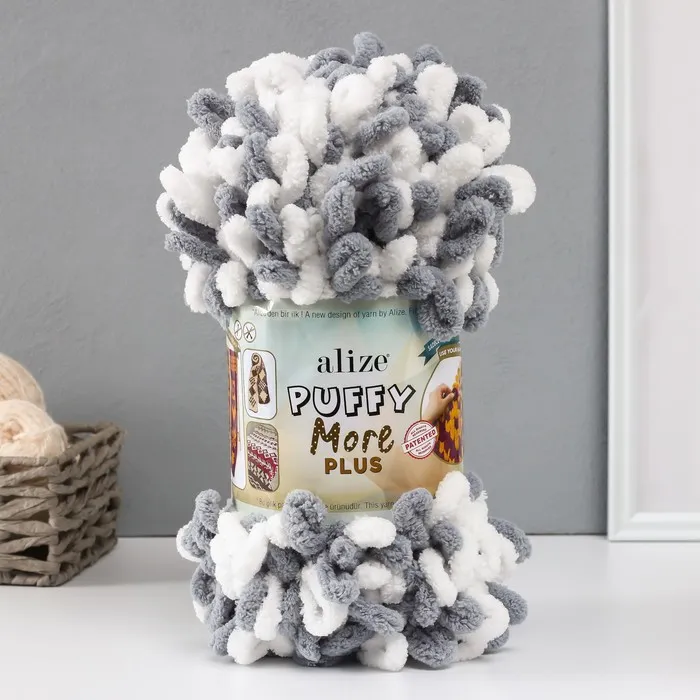 Плюшевая пряжа для вязания руками ALIZE, Puffy More Plus, 100% микрополиэстер, 11 м/250 г, (8008) — Характеристики