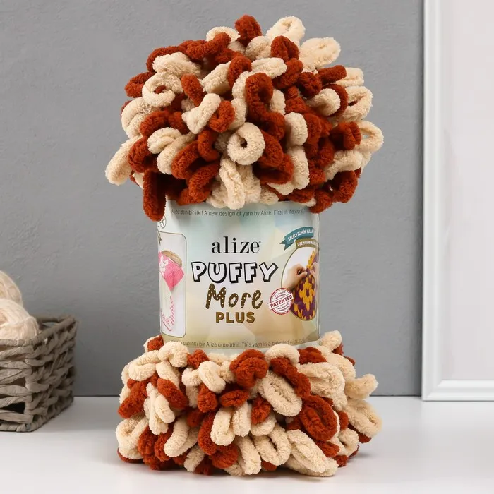 Плюшевая пряжа для вязания руками ALIZE, Puffy More Plus, 100% микрополиэстер, 11 м/250 г, (8010) — Характеристики