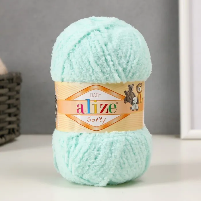 Плюшевая пряжа для вязания спицами, крючком ALIZE, Softy, 100% микрополиэстер, 115 м/50 г, (669 св. бирюза) — Характеристики