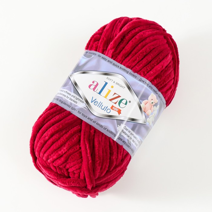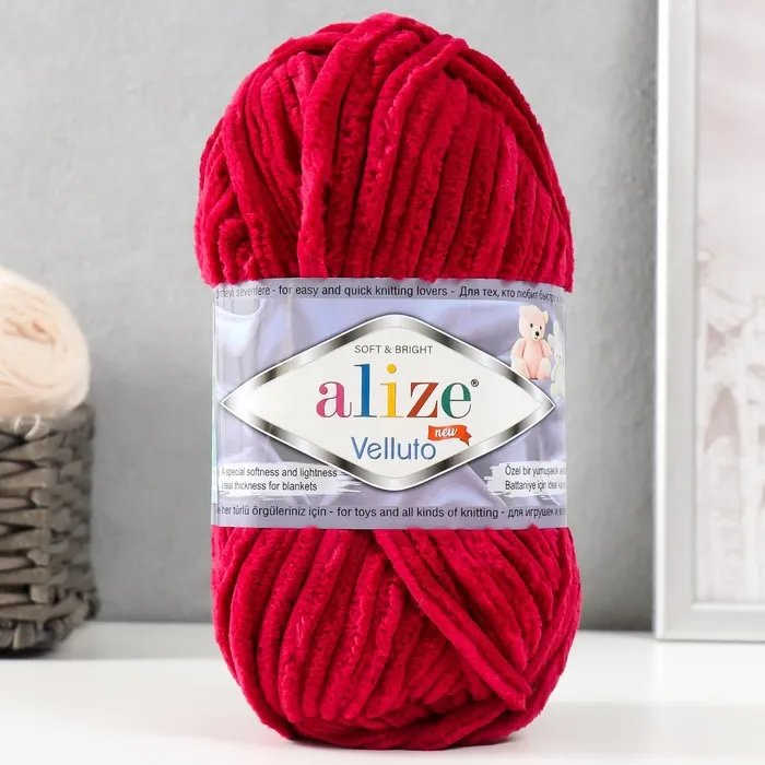 Плюшевая пряжа для вязания спицами, крючком ALIZE, Velluto, 100% микрополиэстер, 68 м/100 г, (107 вишня) — Характеристики