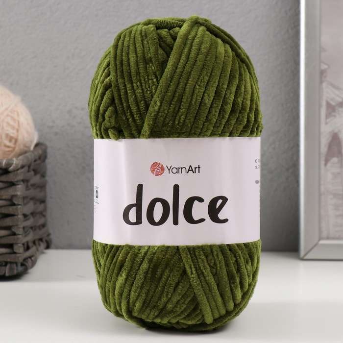 Плюшевая пряжа для вязания спицами, крючком YarnArt, Dolce, 100% микрополиэстер, 120 м/100 г, (772 т. хаки) — Характеристики