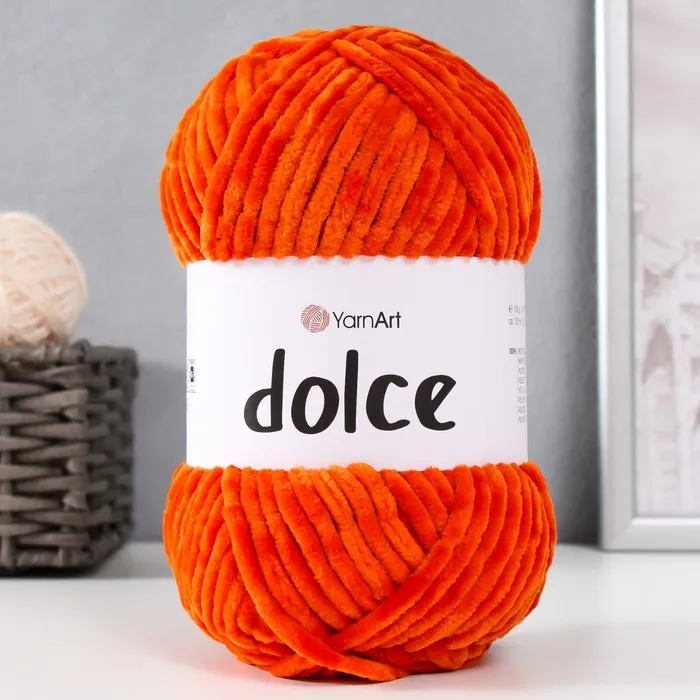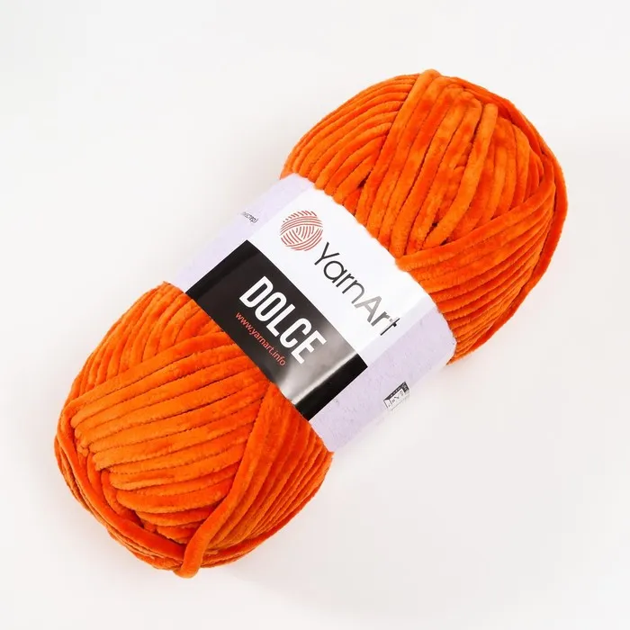 Плюшевая пряжа для вязания спицами, крючком YarnArt, Dolce, 100% микрополиэстер, 120 м/100 г, (778 рыжий) — Характеристики
