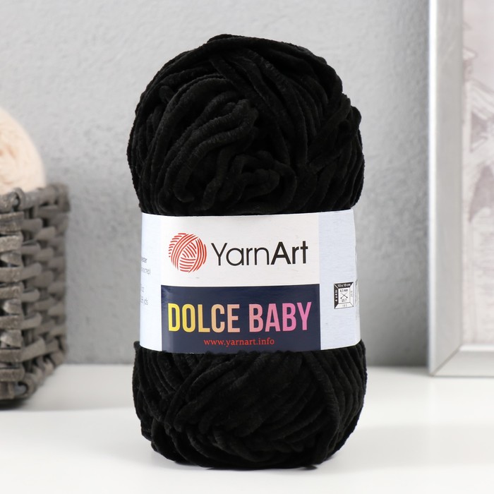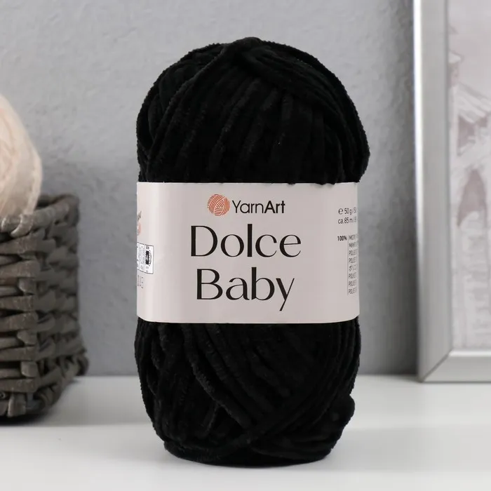 Плюшевая пряжа для вязания спицами, крючком YarnArt, Dolce Baby, 100% микрополиэстер, 85 м/50 г, (742 чёрный) — Характеристики