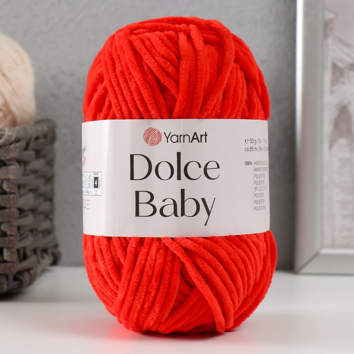 Плюшевая пряжа для вязания спицами, крючком YarnArt, Dolce Baby, 100% микрополиэстер, 85 м/50 г, (748 красный) — Характеристики
