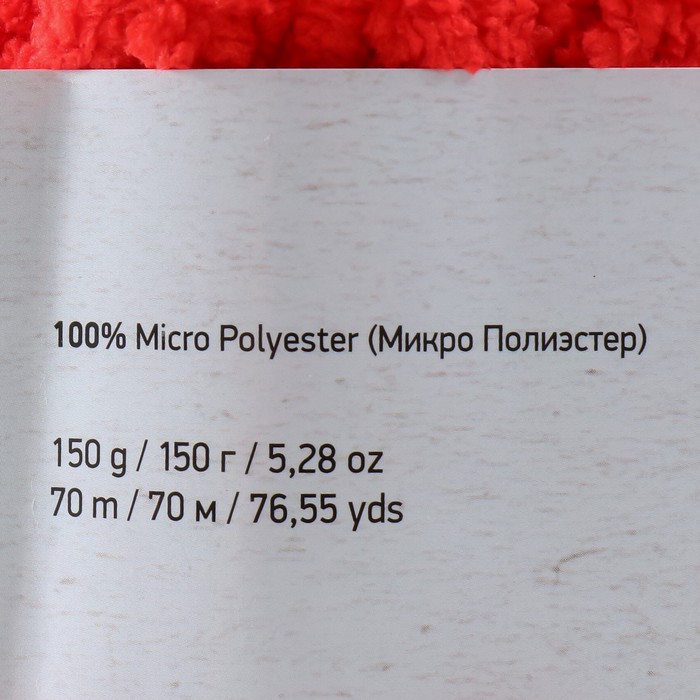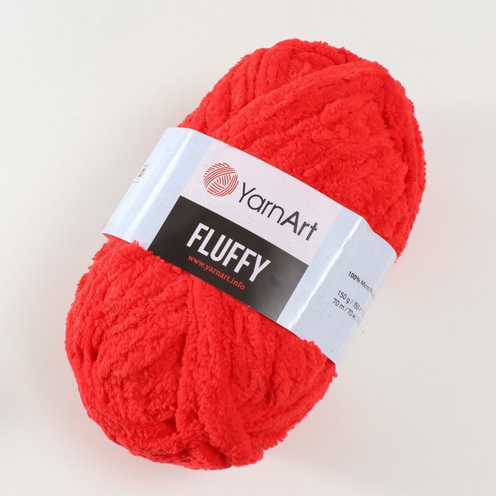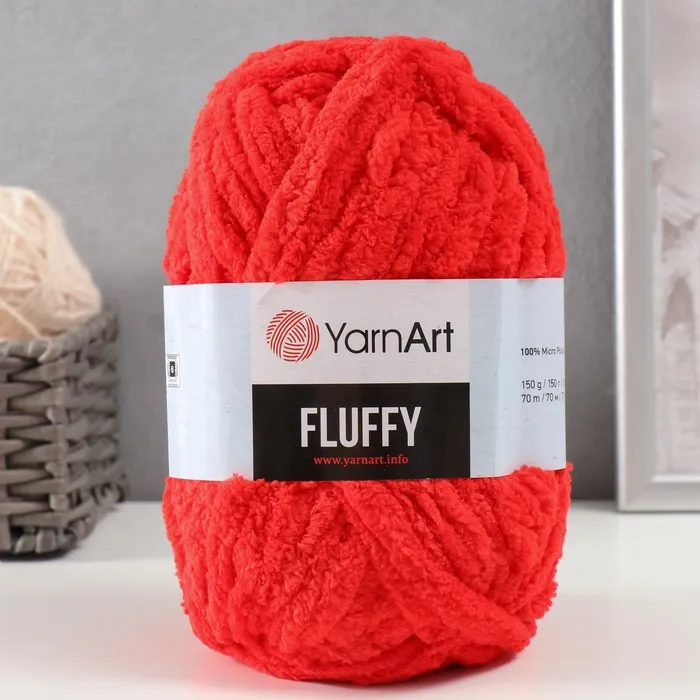 Плюшевая пряжа для вязания спицами, крючком YarnArt Fluffy, 100% микрополиэстер, 70 м/150 г, (723 красный) — Характеристики