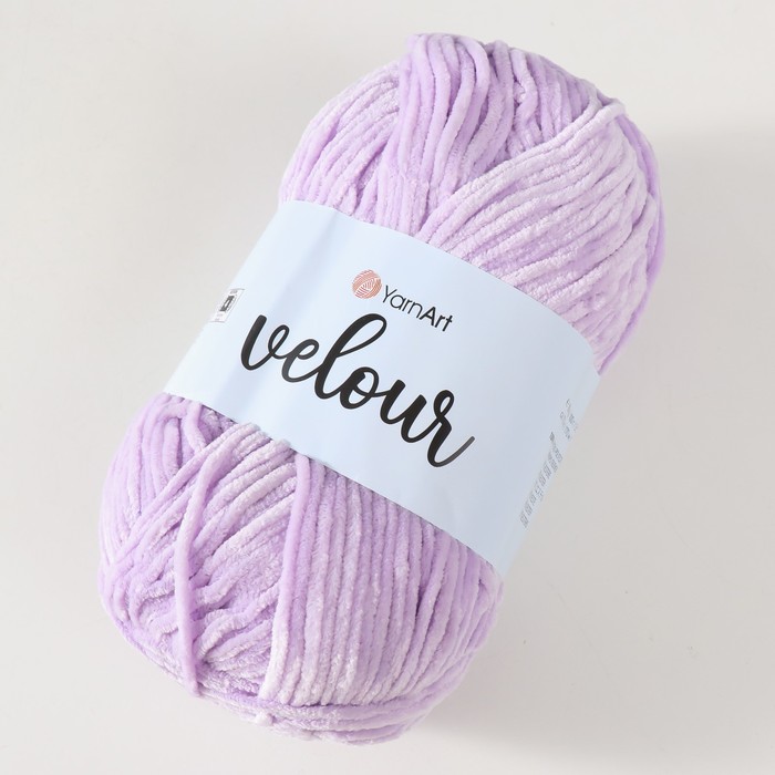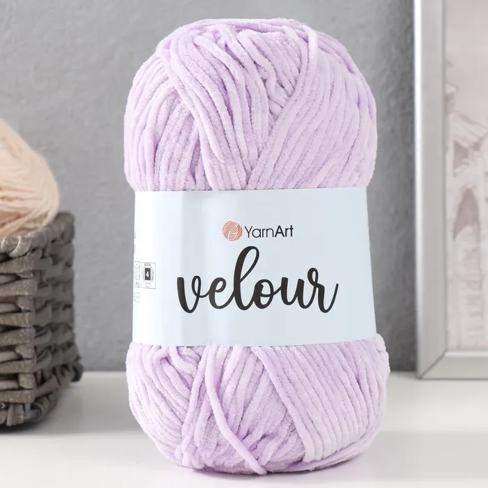Плюшевая пряжа для вязания спицами, крючком YarnArt, Velour, велюровая, 100% микрополиэстер, 170 м/100 г, (859 сирень) — Характеристики