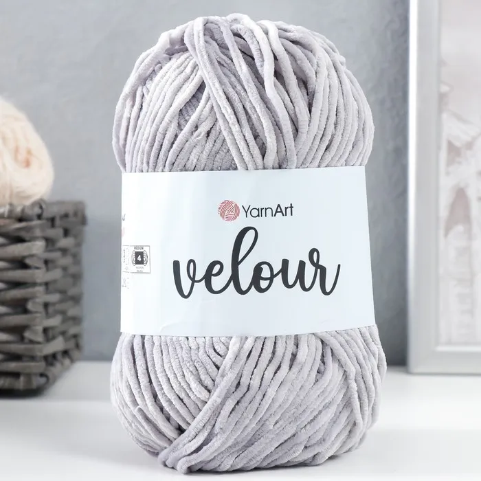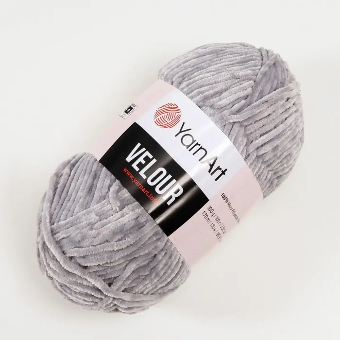 Плюшевая пряжа для вязания спицами, крючком YarnArt, Velour, велюровая, 100% микрополиэстер, 170 м/100 г, (867 св. серый) — Характеристики