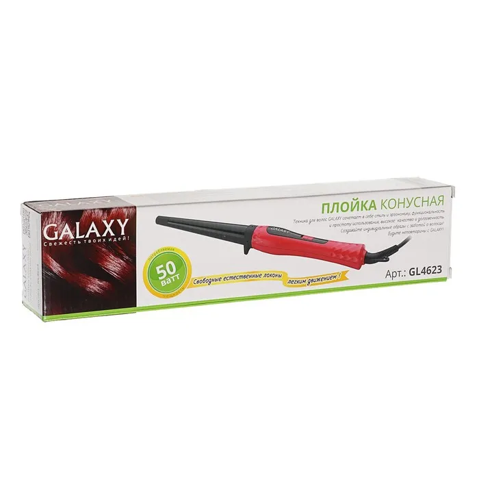 Плойка Galaxy GL 4623, 50 Вт, конусная, керамическое покрытие, d=25 мм, 200°С, красная — Характеристики