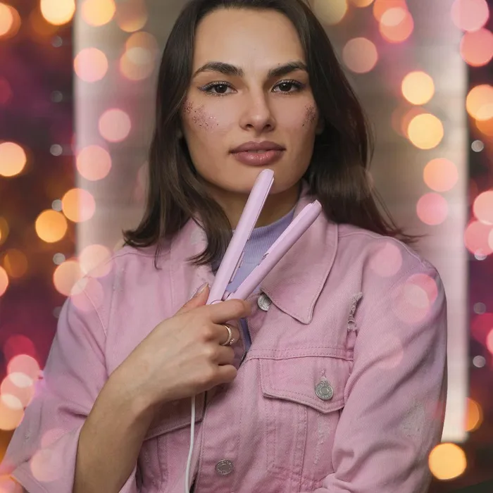 Прикорневой объем создаётся за счет ребристых элементов на пластине щипцов. Выпрямитель компактный, что позволяет его брать с собой на вечеринку или в путешествие. Устройство нагревается до 160 °C.