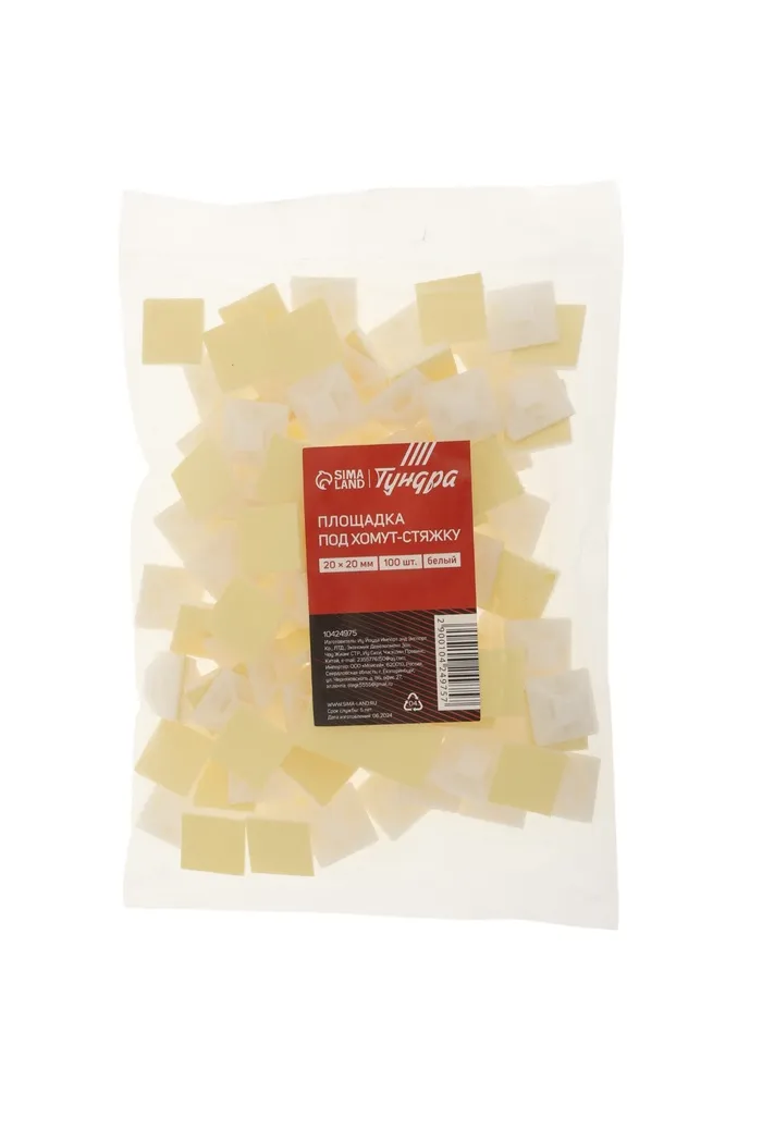 Площадка под хомут-стяжку ТУНДРА, 20×20 мм, белая, 100 шт.