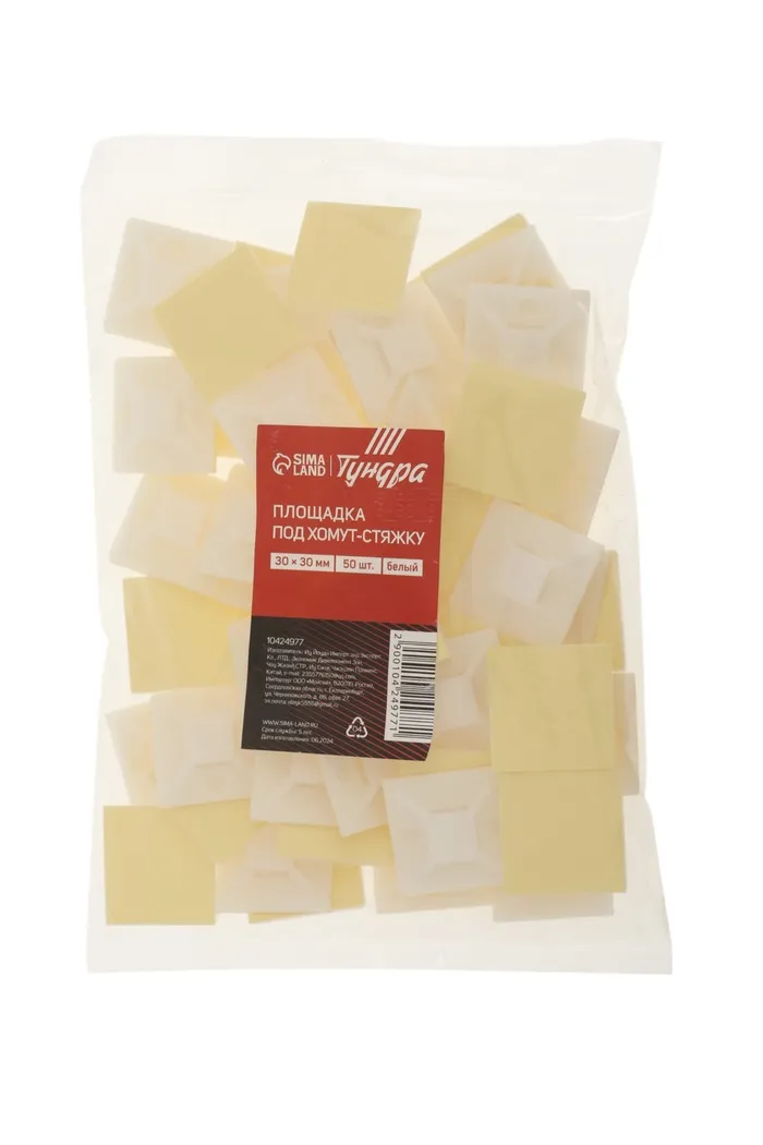 Площадка под хомут-стяжку ТУНДРА, 30×30 мм, белая, 50 шт. — Характеристики