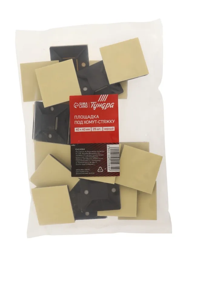 Площадка под хомут-стяжку ТУНДРА, 40×40 мм, чёрная, 25 шт. — Характеристики