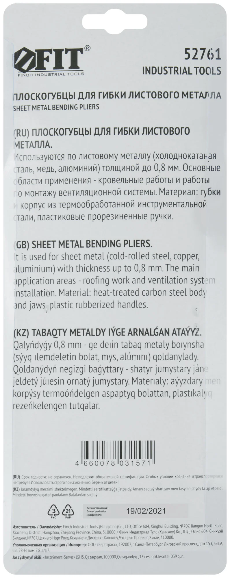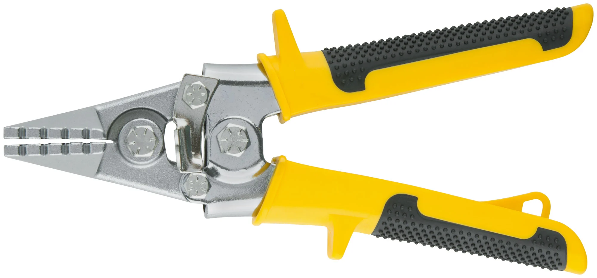 Идеально подходят для работы с листовым металлом, таким как холоднокатаная сталь, медь и алюминий, толщиной до 0,8 мм. Эти плоскогубцы незаменимы при монтаже вентиляционных систем и кровельных работах, обеспечивая точность и удобство в работе.
