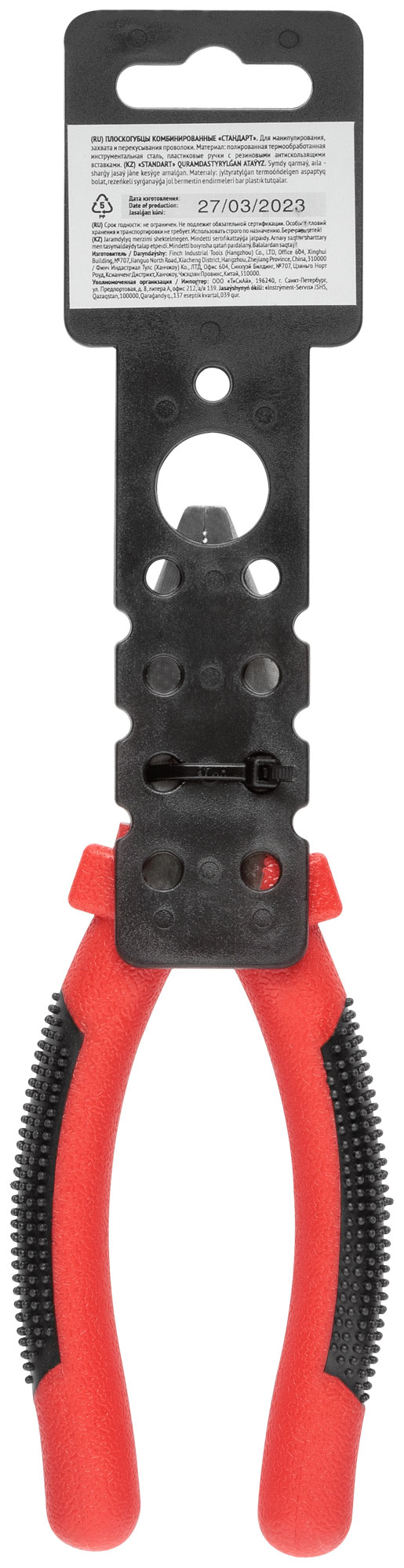 Плоскогубцы изготовлены из усиленной инструментальной стали с полированной поверхностью, что обеспечивает долговечность и износостойкость инструмента. Пластиковые ручки оснащены антискользящими вставками для удобного и безопасного захвата.