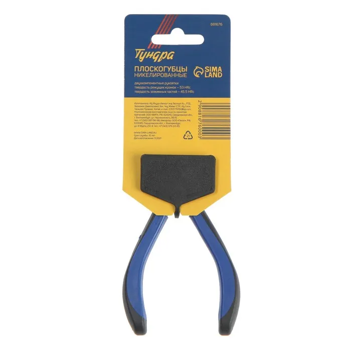 Плоскогубцы ТУНДРА mini, никелированные, двухкомпонентные рукоятки, 120 мм — Характеристики