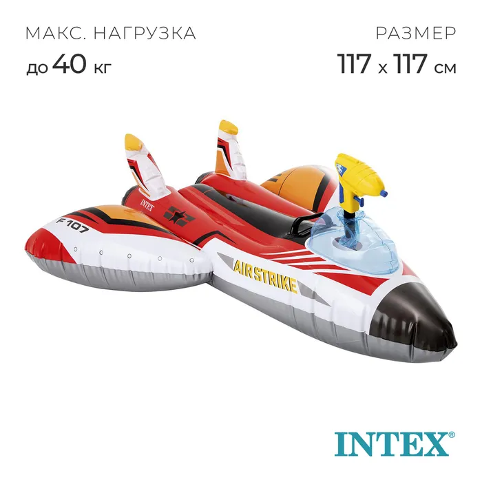 Плот для плавания «Самолет», 117 х 117 см, с водной пушкой, от 3 лет, до 40 кг, 57536NP, цвет МИКС — Характеристики