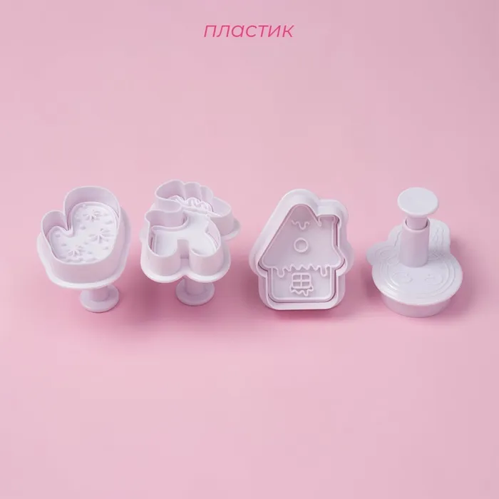 Плунжеры кондитерские Доляна «Зимняя сказка», набор 4 шт., новогодние, пластик, белые — Характеристики