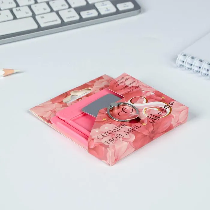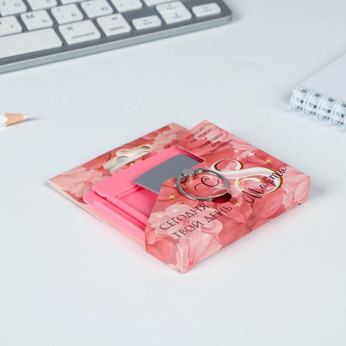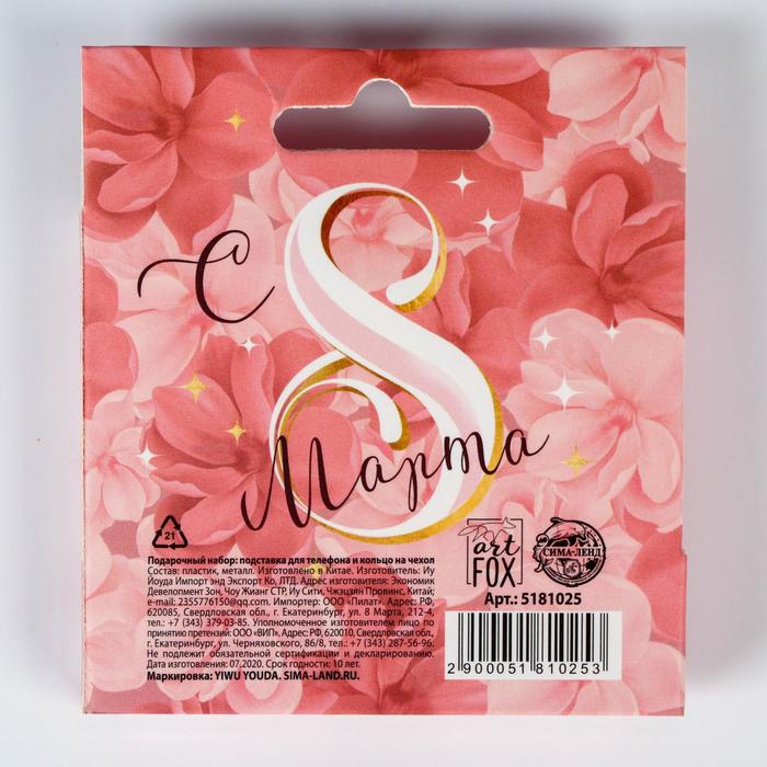 Поадрочный набор «Сегодня твой день - 8 марта»: подставка для телефона и кольцо на чехол — Характеристики