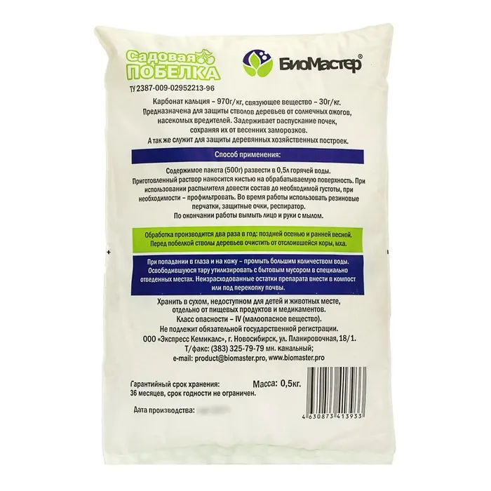 Побелка садовая БиоМастер, 0,5 кг придёт на помощь в сложной ситуации. Средство безопасно для насаждений, но губительно для возбудителей болезней. Использование препарата на садовом участке будет лучшим проявлением заботы об огороде и существенно повысит ваши шансы сохранить плоды.