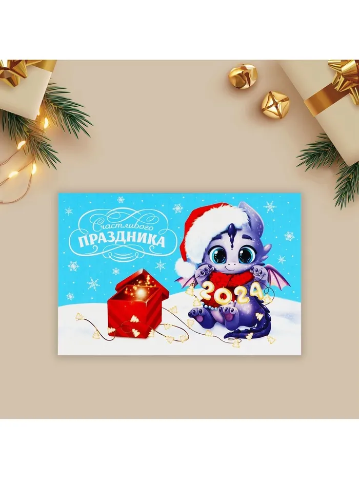 Почтовая карточка «Счастливого праздника», дракон 2024 10 х 15 см — Характеристики