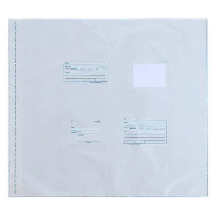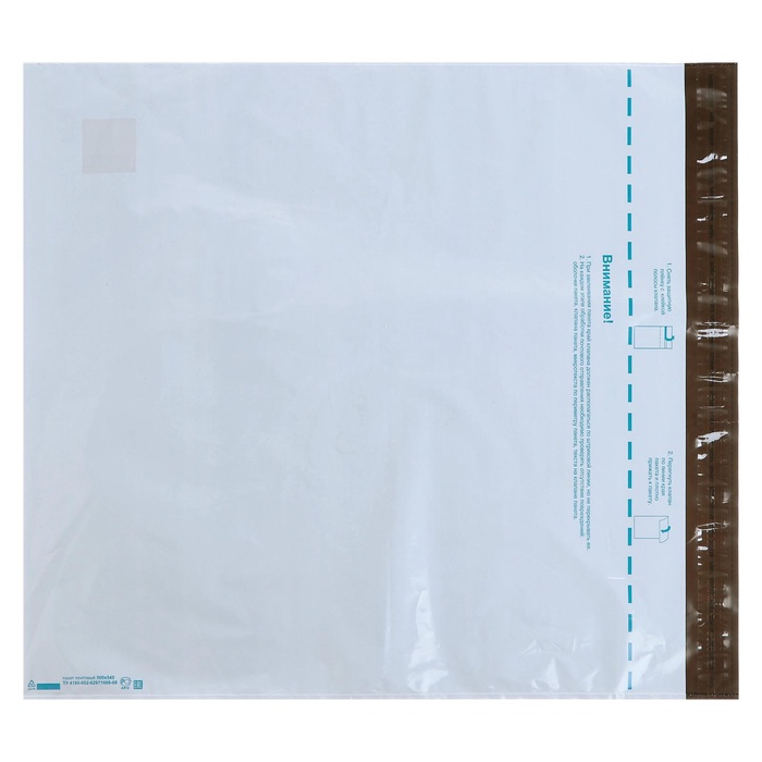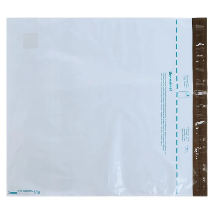 Пакет имеет размер 500х545 мм. Достаточно плотный и его содержимое не просматривается. Такой пакет особо прочен по сравнению с бумажными конвертами. Пластиковые пакеты соответствуют Техническим Условиям (ТУ) Почты России 2015 года и ПОУПС (Правилам оказания услуг Почтовой Связи) от 23 января 2015 год и принимаются во всех отделениях Почты России.