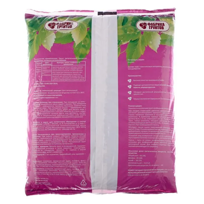 Полностью готовый к применению грунт состоит из высококачественного торфа. Изготовлен в соответствии с требованиями и агрономическими нормами кактусовых. Подходит для различных видов азалий, герани, камелии, вереска, рододендронов.