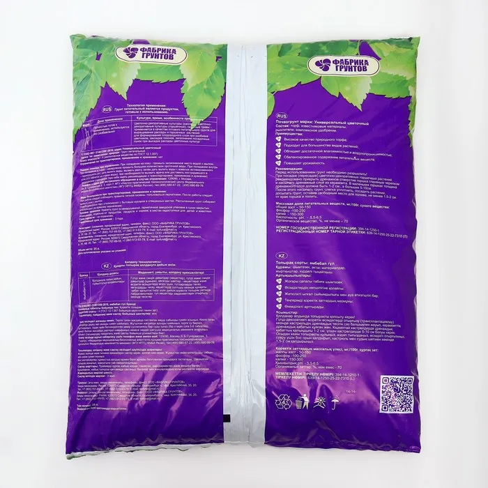 Полностью готовый к применению грунт на основе высококачественного торфа, универсального комплексного удобрения с микроэлементами, известняковыми материалами и рыхлителями.Применяется для цветочно-декоративных культур, при пересадке комнатных растений, растений в зимнем саду.