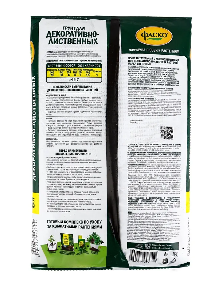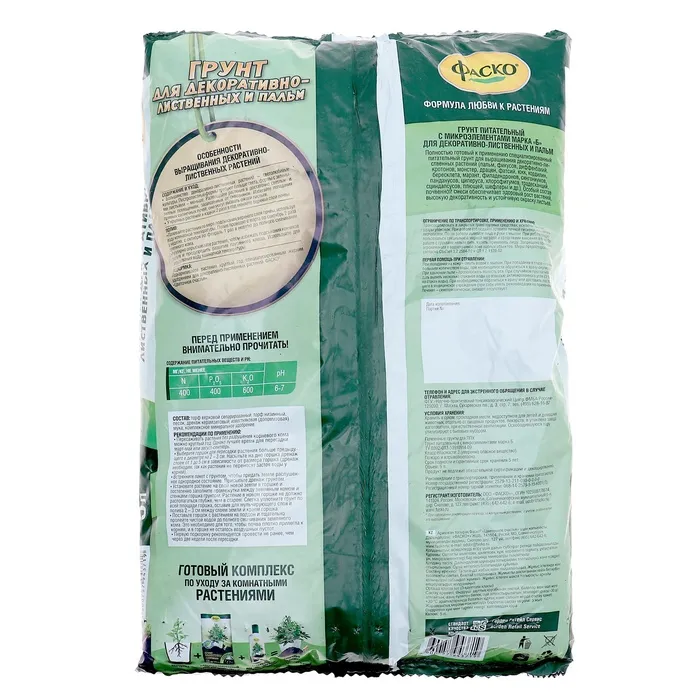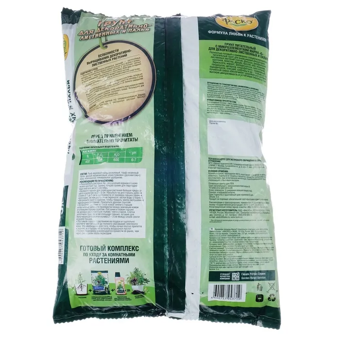 Универсальный профессиональный специализированный грунт для выращивания комнатных растений: диффенбахий, кротонов, монстер, драцен, фатсий, юкк, кордилин, бересклета, марант, пальм, фикусов, филадендронов, сингониумов, панданусов, иперуса, хлорофитумов, традесканций, сциндапсусов, плющей, шефлеры и других декоративно-лиственных растений. Обеспечивает высокую декоративность и устойчивую окраску листьев. Ускоряет рост и развитие растений