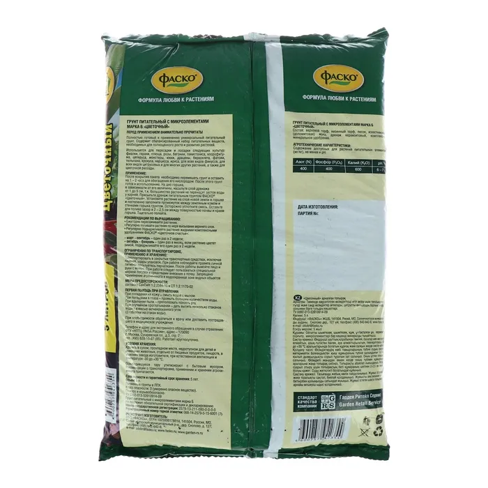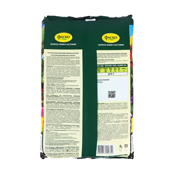 После вскрытия пакета необходимо перемешать грунт и оставить на 1-2 часа для обогащения его кислородом. После этого грунт готов к использованию. На дно горшка, в зависимости от его величины, насыпьте слой дренажа от 1 до 5 см. т.к. большинство растений не переносят застоя воды у корней. Присыпьте дренаж питательным грунтом «ФАСКО» «Цветочный». Установите растение на слой новой земли в горшке и постепенно заполните промежуток между земляным комом и стенками горшка грунтом. Осторожно уплотните смесь. Оставьте для полива зазор в 2-2,5см между поверхностью почвы и краем горшка. Тщательно полейте.