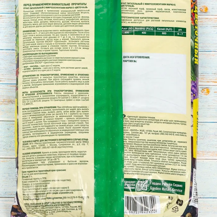 Грунт – полностью готовый к применению питательный грунт.
