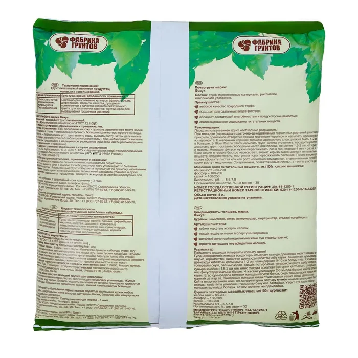 Полностью готовый к применению грунт состоит из высококачественного торфа. Подходит для различных видов фикусов и обладает хорошей влагоёмкостью и воздухопроницаемостью. Имеет сбалансированное содержание питательных веществ.
