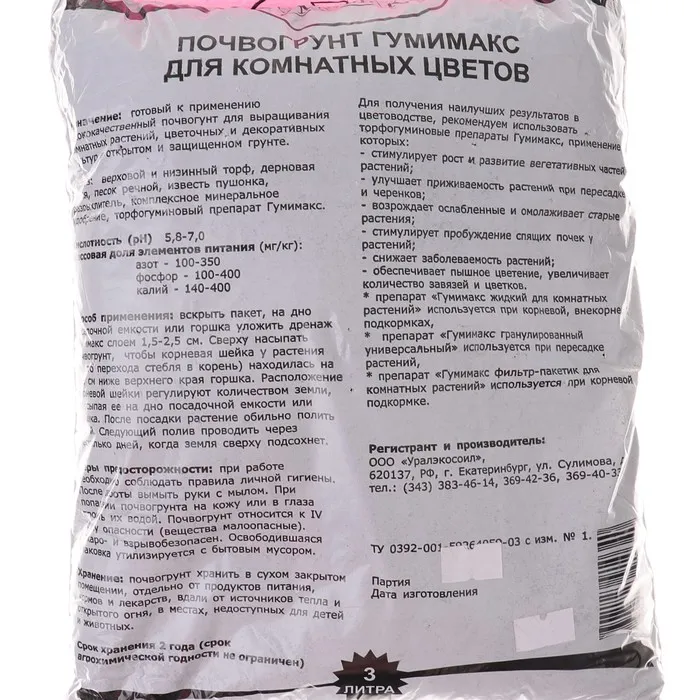Торф, дерновая земля, песок речной, известь пушонка, разрыхлитель, комплекс минеральных удобрений, торфогуминовый препарат Гумимакс .