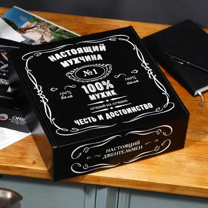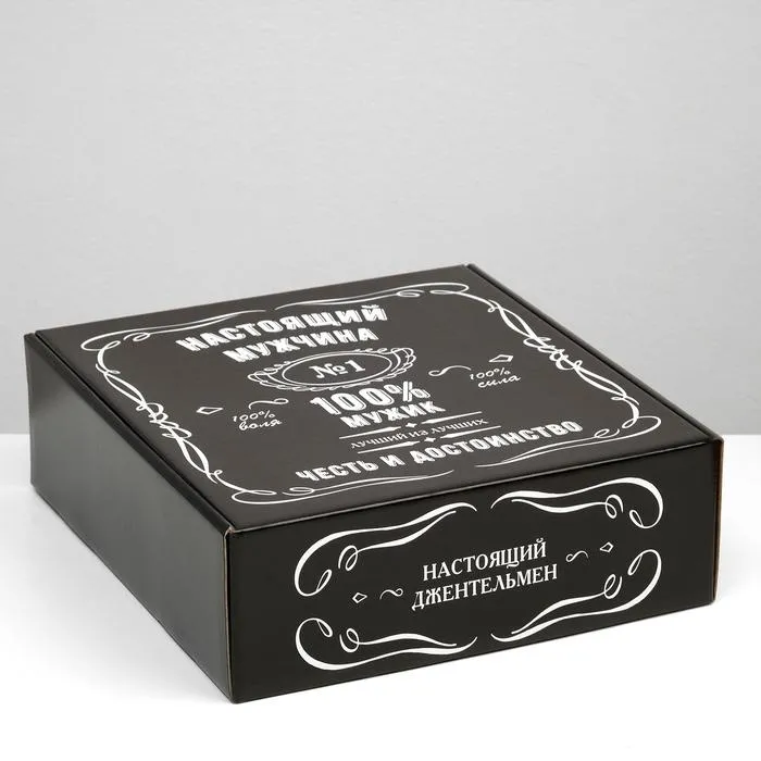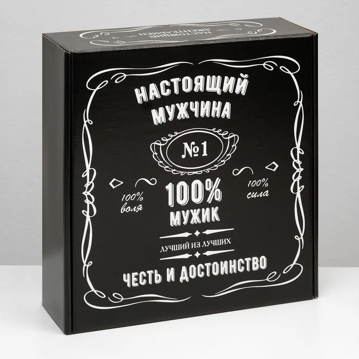 Подарочная коробка "100% Мужик", чёрный, 30×10×27 см — Характеристики