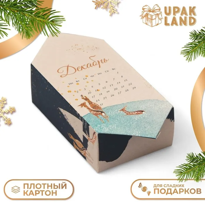 Подарочная коробка - конфета новогодняя складная «Календарь», 9.3×14.6×5.3 см — Характеристики