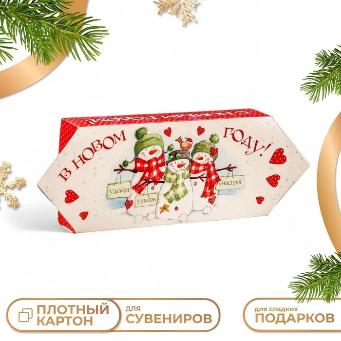 Подарочная коробка «Конфета Снеговички» новогодняя упаковка, 10×20×4.3 см — Характеристики