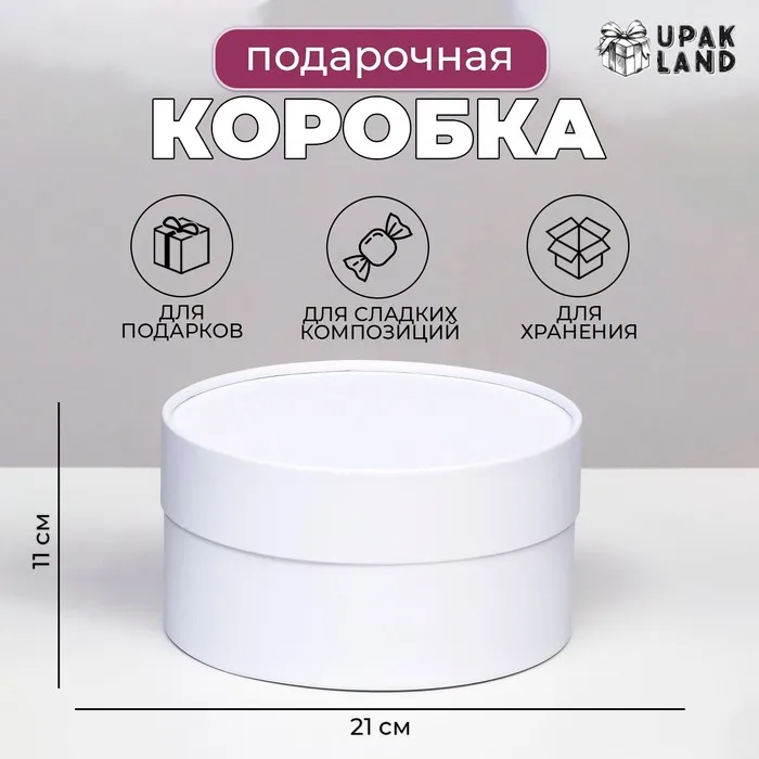 Подарочная коробка круглая «Алмаз» белый, завальцованная без окна, 21×11 см — Характеристики