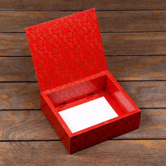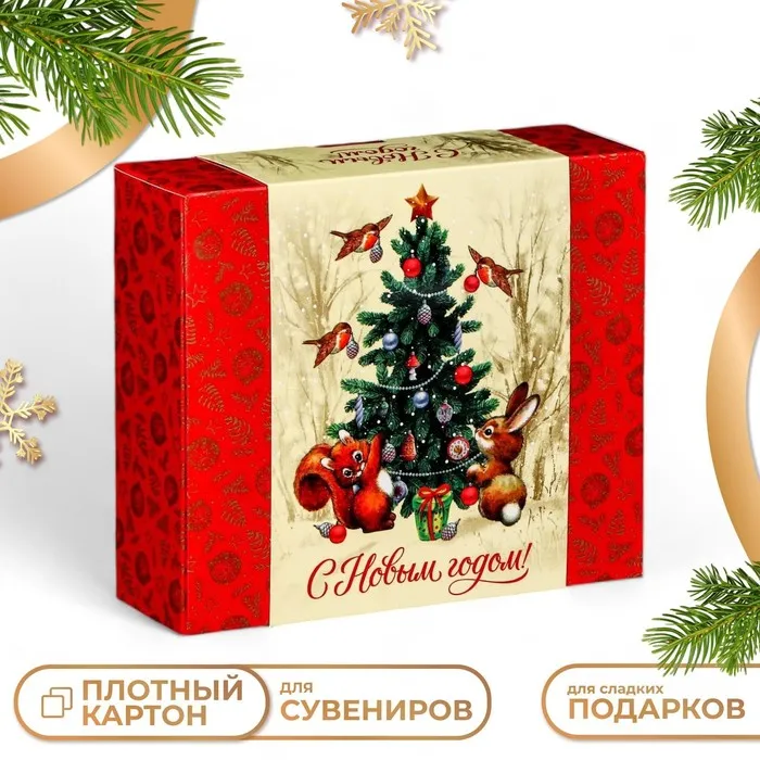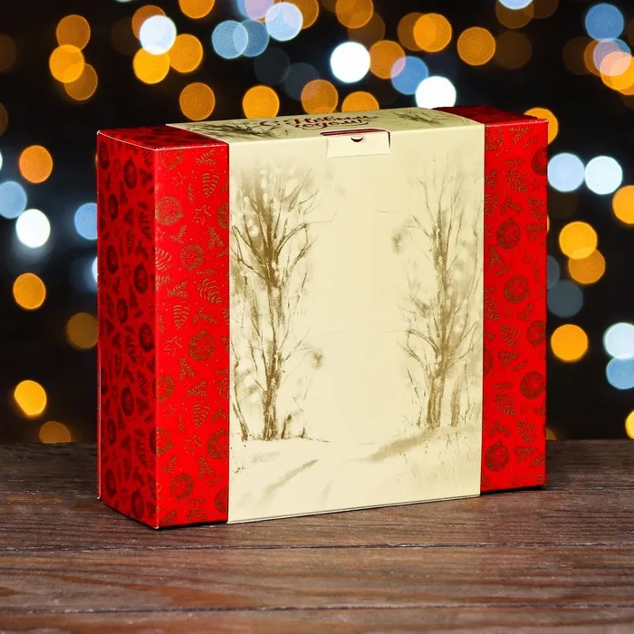 - Элегантный дизайн: Красно-бежевые оттенки в сочетании с лесными рисунками делают коробку оригинальной и запоминающейся на любом подарочном столе. Без символов года, она подойдет для подарков в любой праздник зимнего сезона.