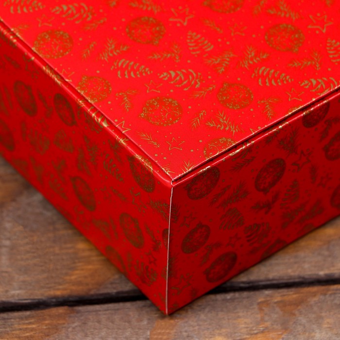 Подарите новогоднюю магию в стильной упаковке! Праздничная коробка в лесном дизайне – идеальный выбор для праздничных подарков. Эта средняя по размеру прямоугольная коробка выделяется яркими красными и бежевыми тонами и уникальным новогодним орнаментом, создавая атмосферу праздника.