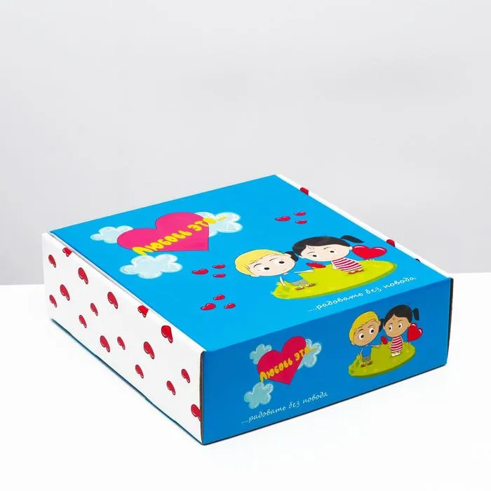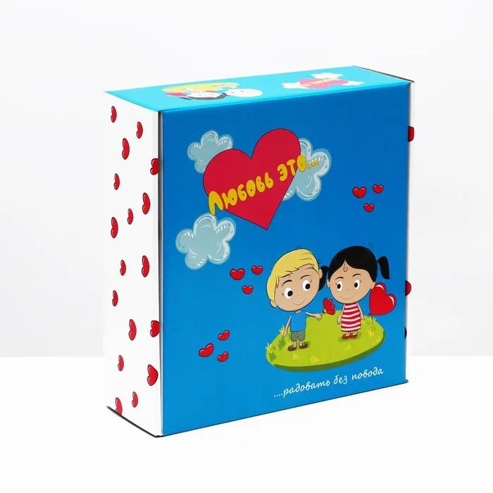 Подарочная коробка "Любовь это...", голубая, 28.5×9.5×29.5 см — Характеристики