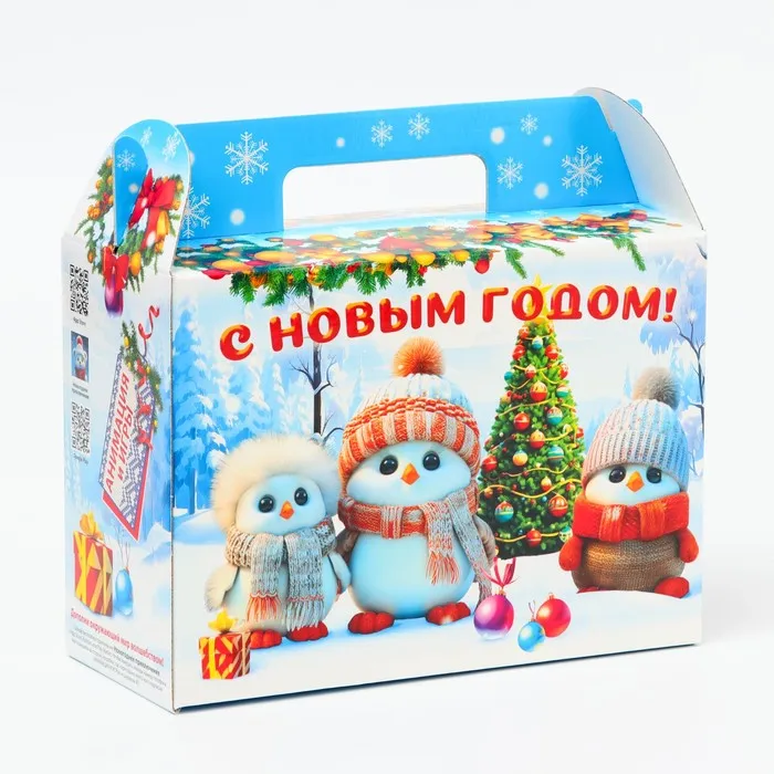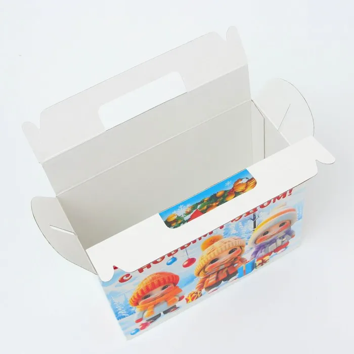 Наполнить коробку можно конфетами или небольшими новогодними сувенирами. Яркий и оригинальный рисунок на коробке создаст праздничное настроение и подчеркнёт тематику праздника. Такая упаковка сделает ваш подарок по-настоящему особенным и запоминающимся.
