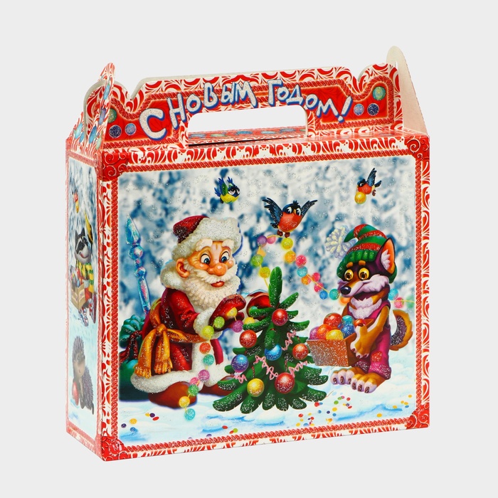 Коробка выполнена из качественных материалов, которые обеспечивают сохранность содержимого. Она имеет яркий и красочный дизайн, который отражает атмосферу Нового года.