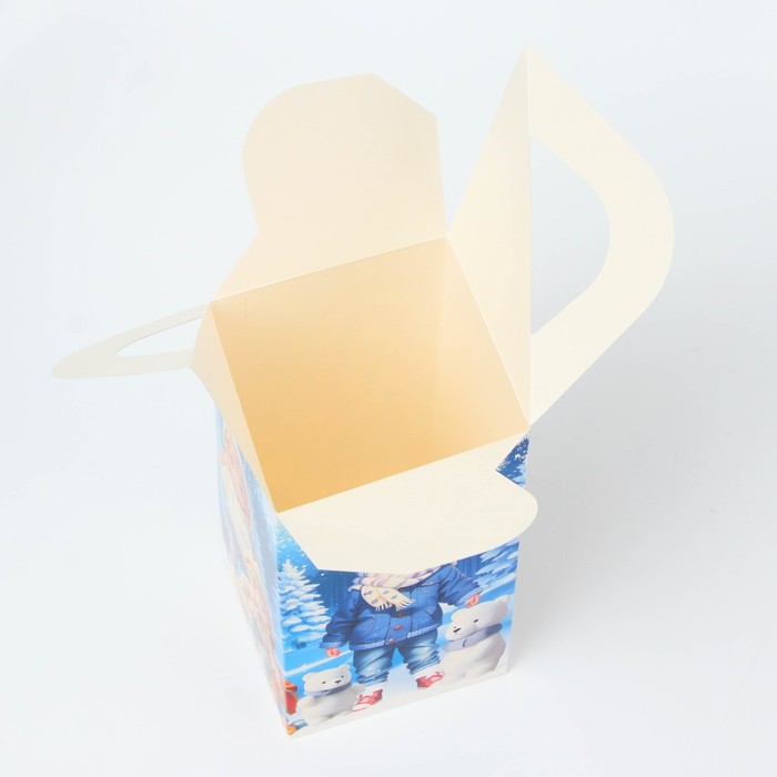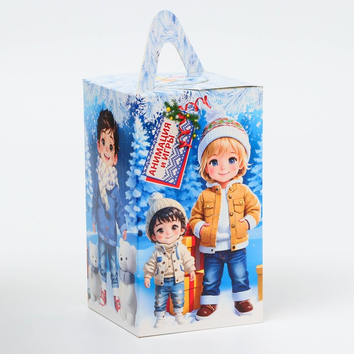 Подарочная коробка Новогодняя Четырехгранка большая «Детвора» с анимацией 10×10×18 см