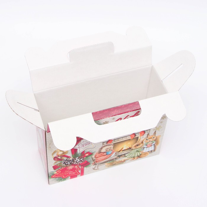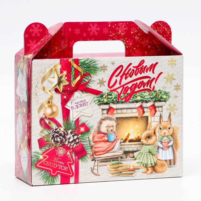 Коробка выполнена из качественных материалов, которые обеспечивают сохранность содержимого. Она имеет яркий и красочный дизайн, который отражает атмосферу Нового года.