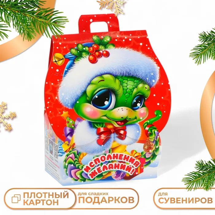 Коробка выполнена из качественных материалов, которые обеспечивают сохранность содержимого. Она имеет яркий и красочный дизайн, который отражает атмосферу Нового года.