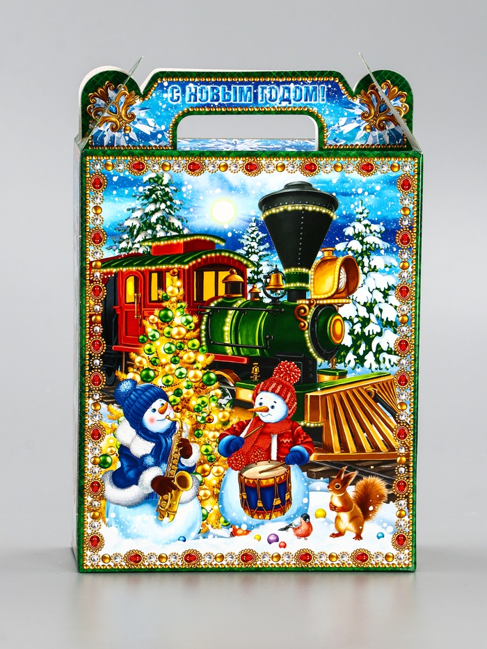 Отправьтесь в путешествие за новогодним настроением! Коробка «Экспресс» — это стильная упаковка для сладких подарков в виде дорожного сундучка. Зелёный цвет с праздничными элементами создаёт атмосферу зимнего путешествия и праздничного приключения.