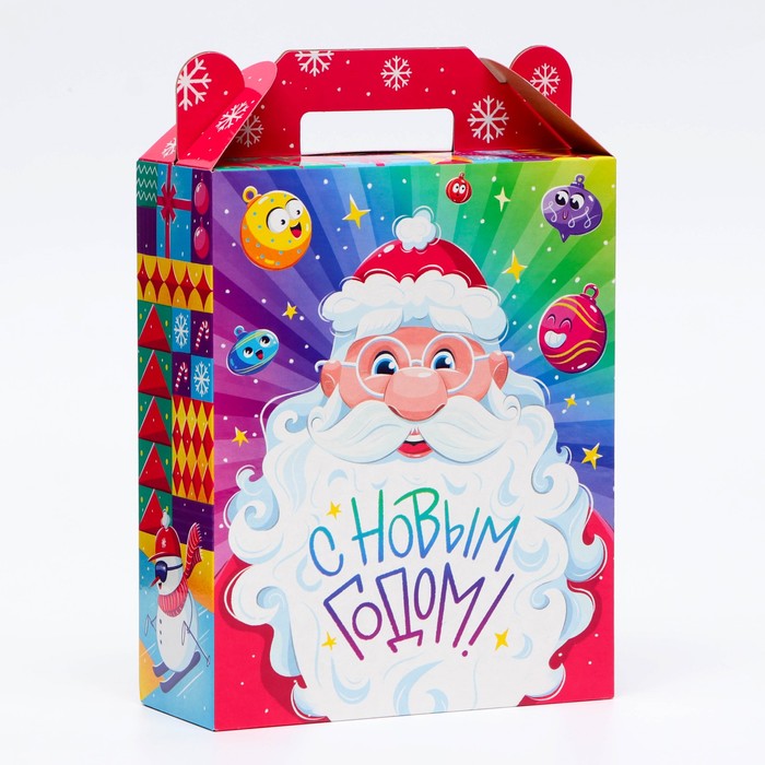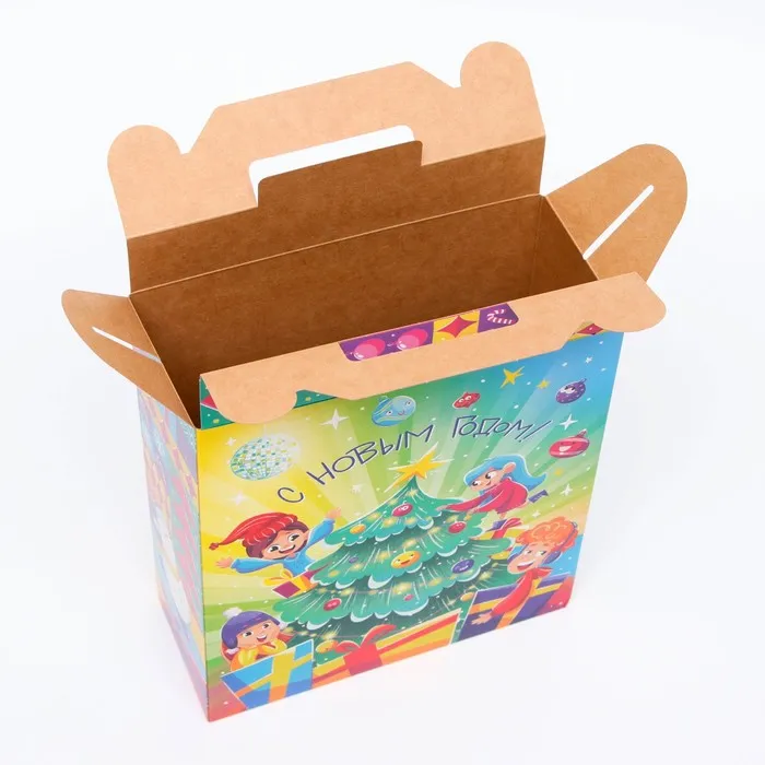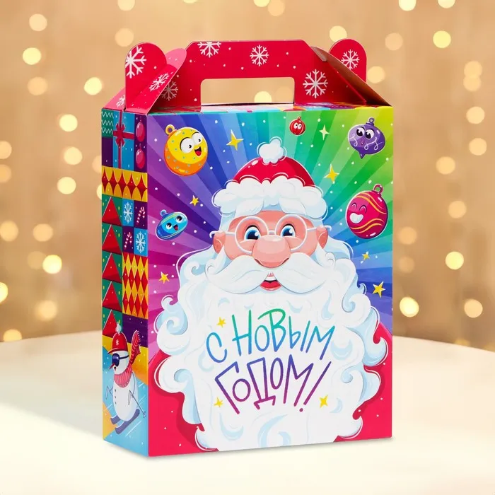 Коробка выполнена из качественных материалов, которые обеспечивают сохранность содержимого. Она имеет яркий и красочный дизайн, который отражает атмосферу Нового года.